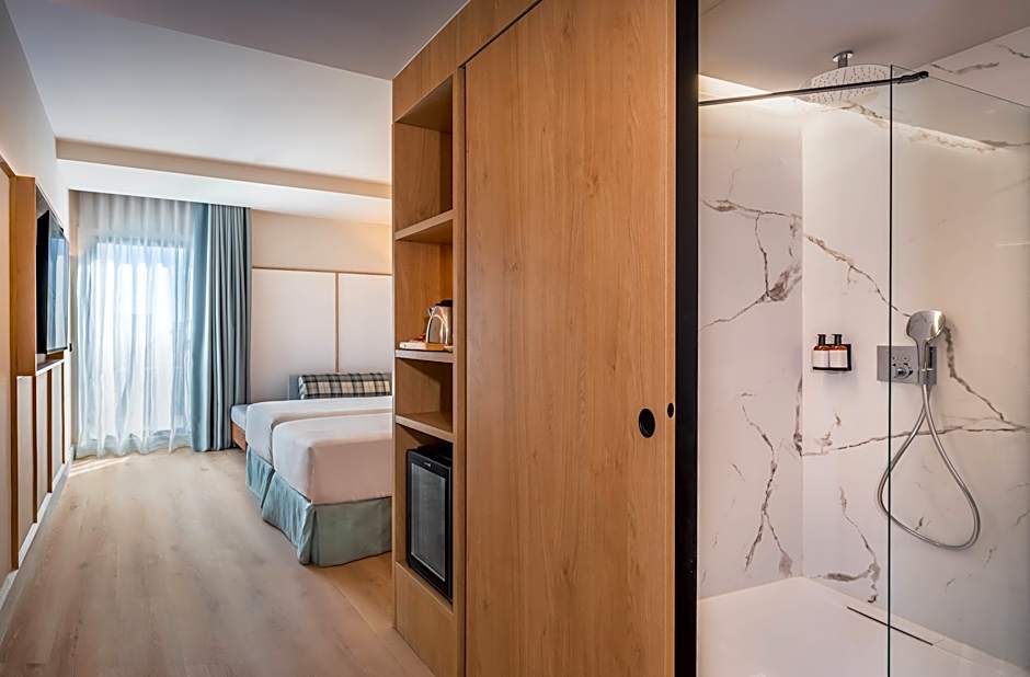 This air-conditioned room features parquet floors and smart décor. It comes with free Wi-Fi, satellite TV and a mini-bar. The private bathroom comes with a hairdryer.